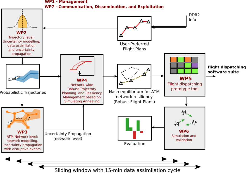 - WP3 – ATM Network level: network modelling, uncertainty propagation with disruptive events